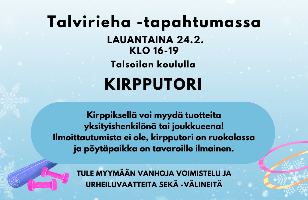 Järjestämme lauantaina 24.2. Talvirieha -tapahtuman Talsoilan koululla.
