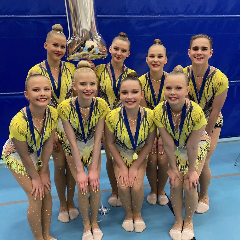 12-14 vuotiaiden harrastesarjassa Adalia sai kategorian 1 pistein TV 4,467 AV 4,300 EXE 8,050 yhteensä 16,817, joka toi joukkueelle kultaa.