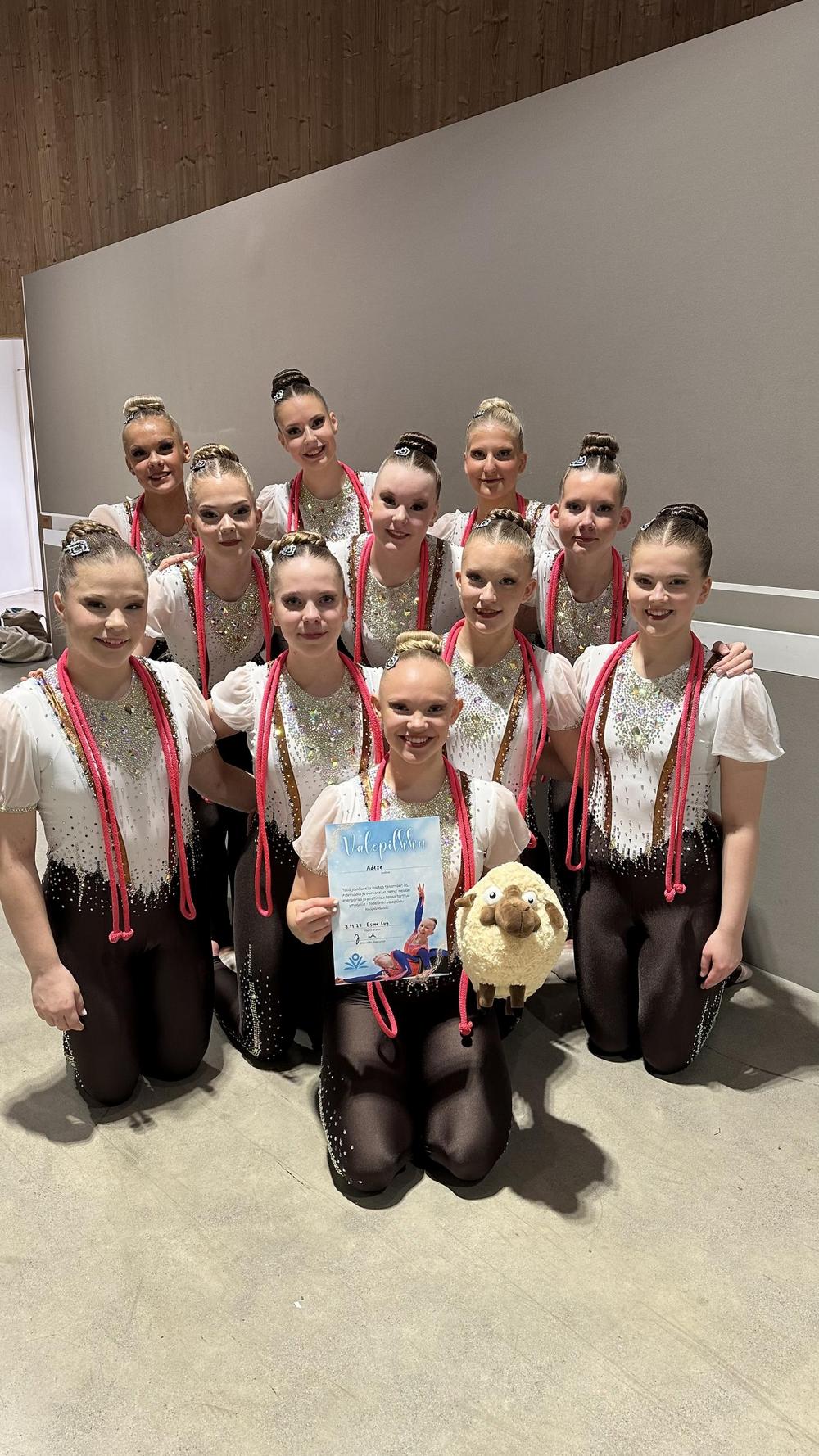 Adeline 14-16-vuotiaiden harrastesarjassa pisteet TV 3,133 AV 3,267 EXE 7,100 yhteensä 13,500.