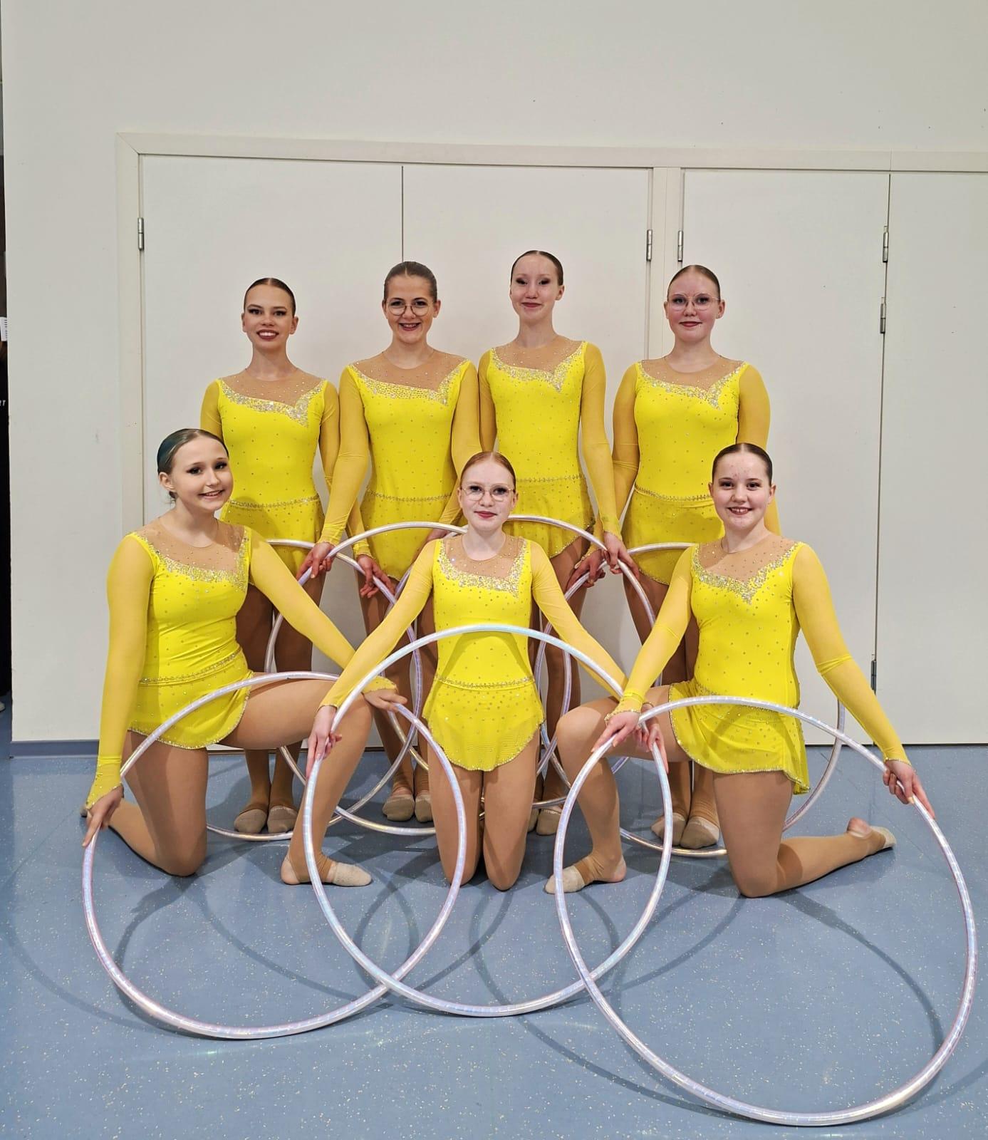 Adeline 14-16-vuotiaiden harrastesarjassa pisteet TV 3,133 AV 3,267 EXE 7,100 yhteensä 13,500.